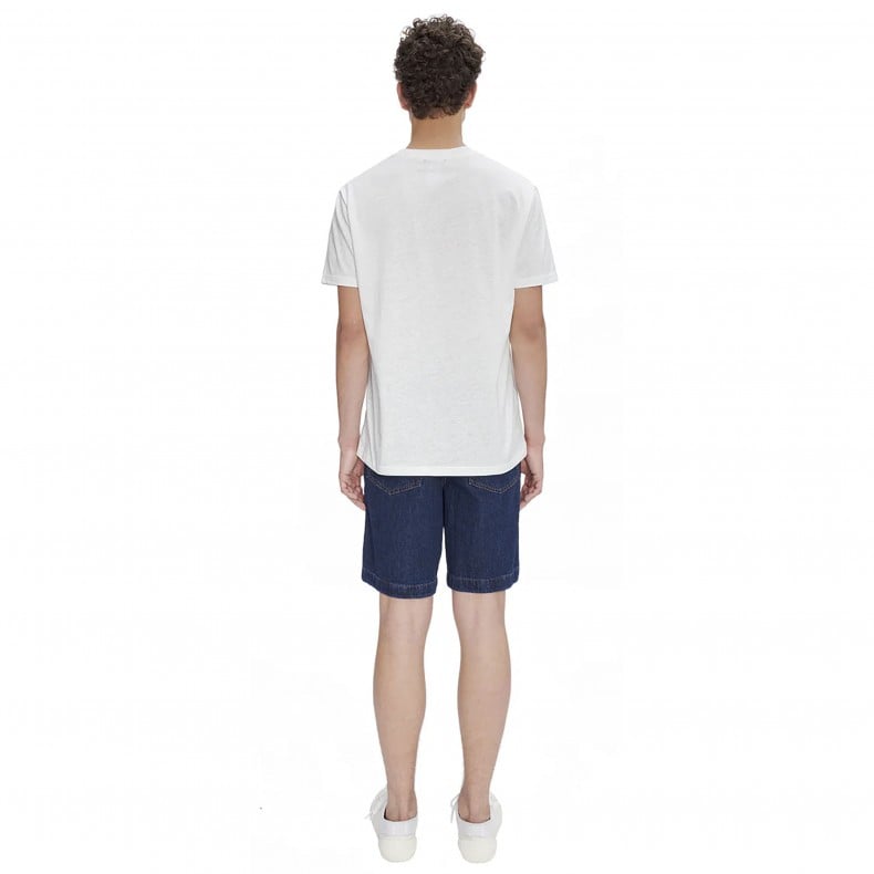White T-shirt in recycled organic cotton with blue colour block.