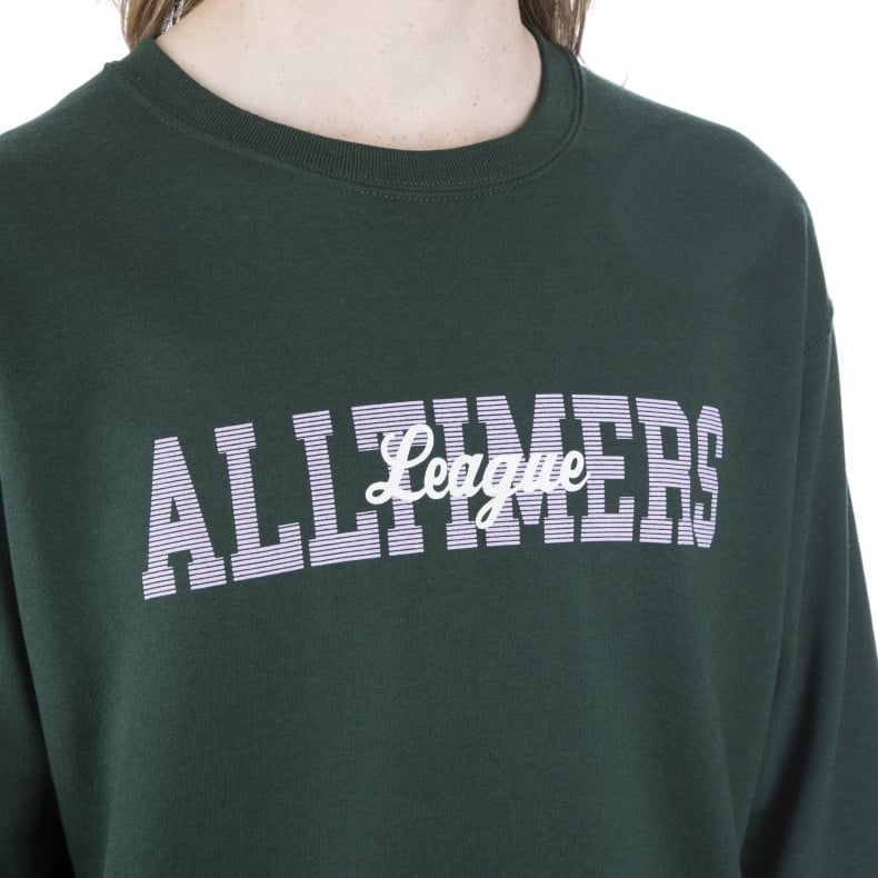 Regular fit men's Alltimers League Crew Neck Sweatshirt in a Green cotton fabric with a ribbed neck; set-in sleeves; and ribbed cuffs and hem. The Alltimers League Crew Neck Sweatshirt is finished with a central League chest print.