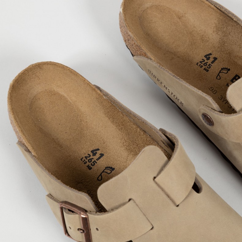 The BIRKENSTOCK Boston is a veritable classic that can easily be worn all year round. The Boston has a legendary status thanks to its sophisticated, individual design. The upper is made from extra-thick, oiled nubuck leather with an open-selvage finish.