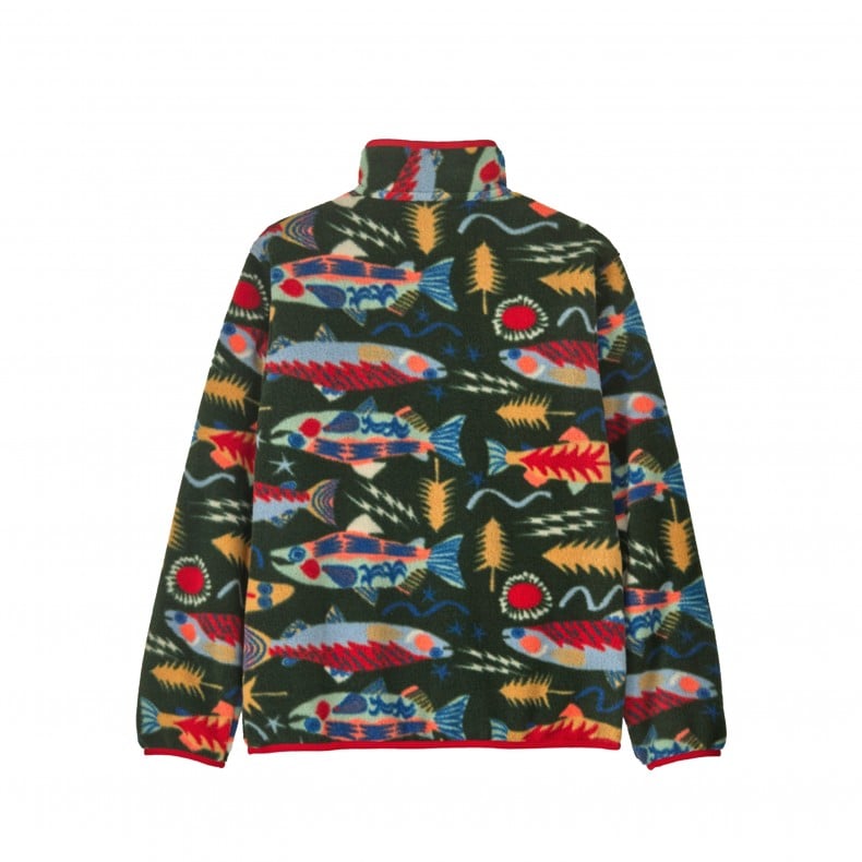 Kids' Patagonia Lightweight Synchilla Snap-T Fleece Pullover (Salmon Energy: Old Growth Green)