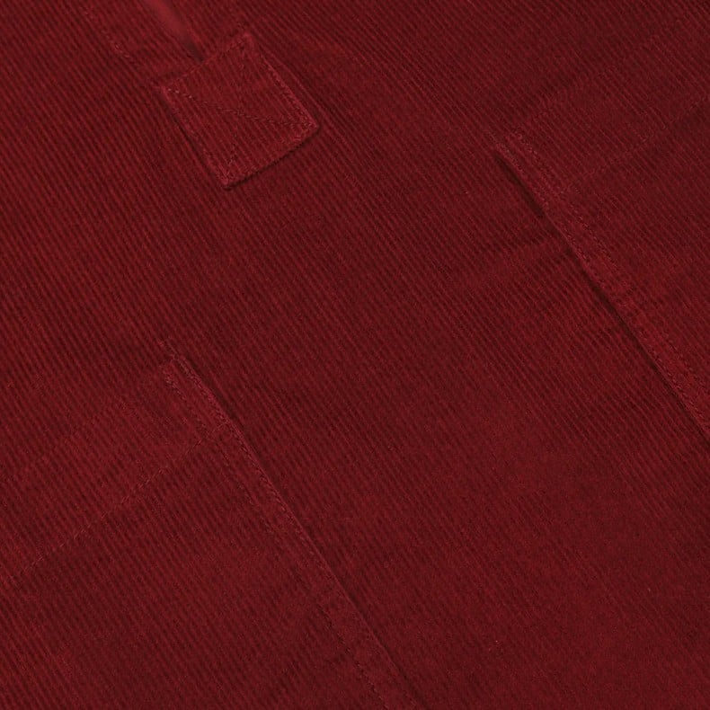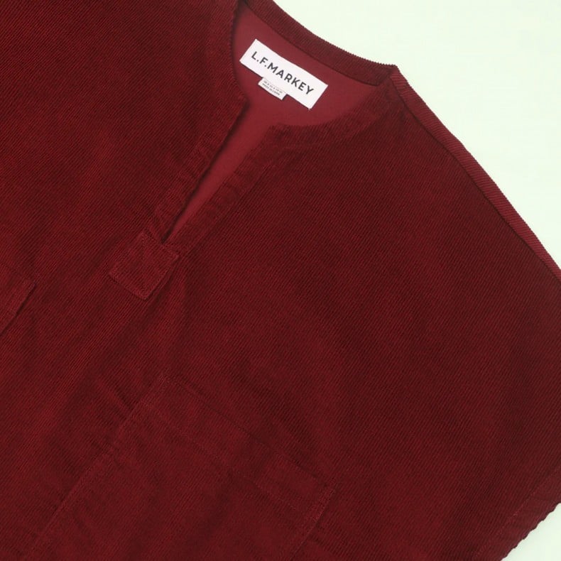 The Trent Top has a boxy square shape with a slight crop and wide short sleeves. Featuring a low v-neckline and front patch pockets. Made from a burgundy cotton corduroy.