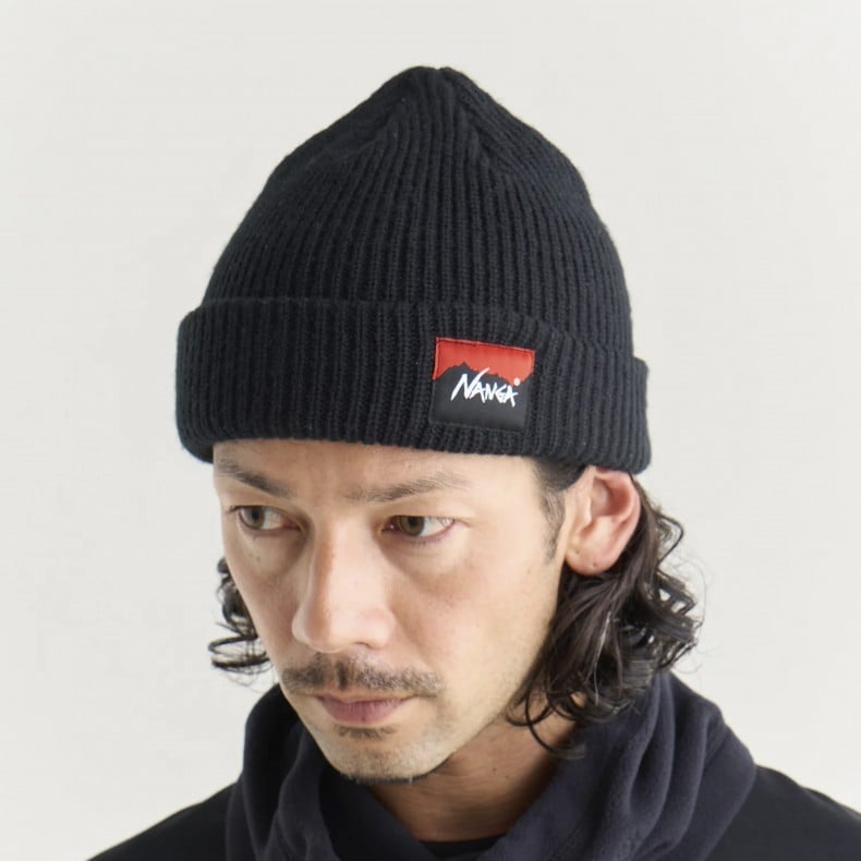 This knit beanie features an authentic design that covers your ears securely. The mountain logo woven label is stitched on the front side, adding a NANGA-like accent to the simple design.