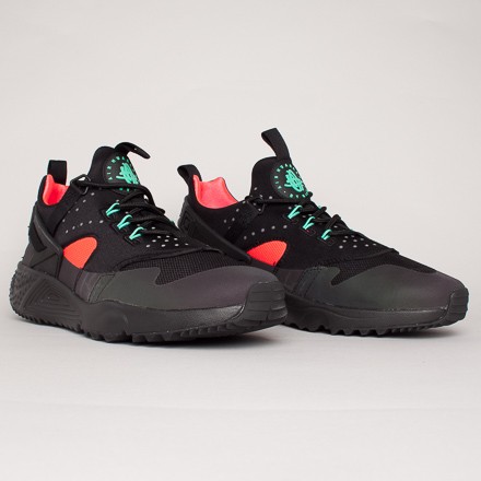 Built on a Nike Air Huarache Utility training shoe sole unit, with a black durable high traction sticky rubber outsole, and a black lightweight Phylon midsole featuring Nike Air cushioning in the forefoot & heel.