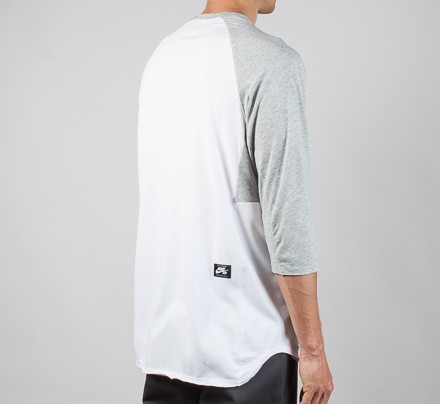 Nike SB Skyline Dri-FIT 3/4 Sleeve Raglan in White/Dark Grey Heather/White.