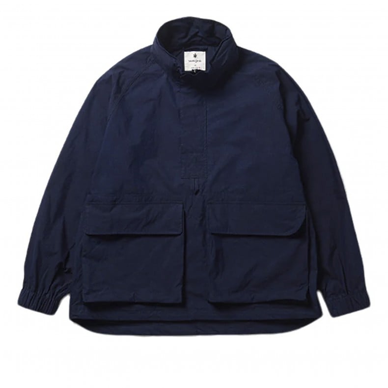 This versatile anorak features a stowable hood and can be worn as both a stand-up collar and a hoodie. The hood and hem feature adjustable elastic drawstrings, and the cuffs are shirred to prevent air from entering. Ventilation eyelets under the arms allow accumulated heat to escape. The front features a double flap pocket that can be accessed from above, while the back has a large-capacity pocket. There is a loop in the centre of the front where you can hang a light at night.