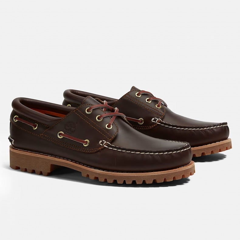 Timberland Authentic 3-Eye Lug Handsewn Boat Shoe (Brown)