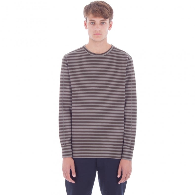 Universal Works Home Long Sleeve T-Shirt (Dark Stone Jersey Stripe)